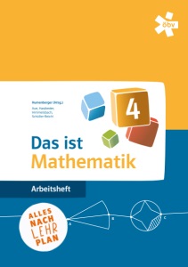 Das ist Mathematik 4, Arbeitsheft + E-Book Schulbuchnummer: 225369 Das ist Mathematik 4, Arbeitsheft E-Book Solo Schulbuchnummer: 225371 Mit Bescheid des Bundesministeriums Bildung vom 17. Februar 2026, Geschäftszahl: 2024-0.697.760, gemäß § 14 Abs. 2 und 5 des Schulunterrichtsgesetzes, BGBl. Nr. 472/86, und gemäß den derzeit geltenden Lehrplänen als für den Unterrichtsgebrauch für die 4. Klasse an Mittelschulen im Unterrichtsgegenstand Mathematik (Lehrplan 2023) und für die 4. Klasse an allgemein bildenden höheren Schulen – Unterstufe im Unterrichtsgegenstand Mathematik (Lehrplan 2023) geeignet erklärt. Dieses Werk wurde auf der Grundlage eines zielorientierten Lehrplans verfasst. Konkretisierung, Gewichtung und Umsetzung der Inhalte erfolgen durch die Lehrerinnen und Lehrer. Liebe Schülerin, lieber Schüler, du bekommst dieses Schulbuch von der Republik Österreich für deine Ausbildung. Bücher helfen nicht nur beim Lernen, sondern sind auch Freunde fürs Leben. Kopierverbot Wir weisen darauf hin, dass das Kopieren zum Schulgebrauch aus diesem Buch verboten ist – § 42 Abs. 6 Urheberrechtsgesetz: „Die Befugnis zur Vervielfältigung zum eigenen Schulgebrauch gilt nicht für Werke, die ihrer Beschaffenheit und Bezeichnung nach zum Schul- oder Unterrichtsgebrauch bestimmt sind.“ Technische Zeichnungen: Dr. Herbert Löffler, Wien Illustrationen: Mag. Adam Silye, Wien 1. Auflage (Druck 0001) © Österreichischer Bundesverlag Schulbuch GmbH & Co. KG, Wien 2026 www.oebv.at Alle Rechte vorbehalten. Jede Art der Vervielfältigung, auch auszugsweise, gesetzlich verboten. Redaktion: Mag. Melanie Zimmermann, Wien Herstellung: Ing. Bianca Mannsberger, Wien Umschlaggestaltung: weissbunt, design und kontext, Berlin Layout: weissbunt, design und kontext, Berlin Satz: CMS - Cross Media Solutions GmbH, Würzburg Druck: Paul Gerin GmbH & Co KG, Wolkersdorf ISBN 978-3-209-12286-5 (Das i. Mathematik AH 4 + E-Book) ISBN 978-3-209-13081-5 (Das i. Mathematik AH 4 E-Book Solo) Nur zu Prüfzwecken – Eigentum des Verlags öbv