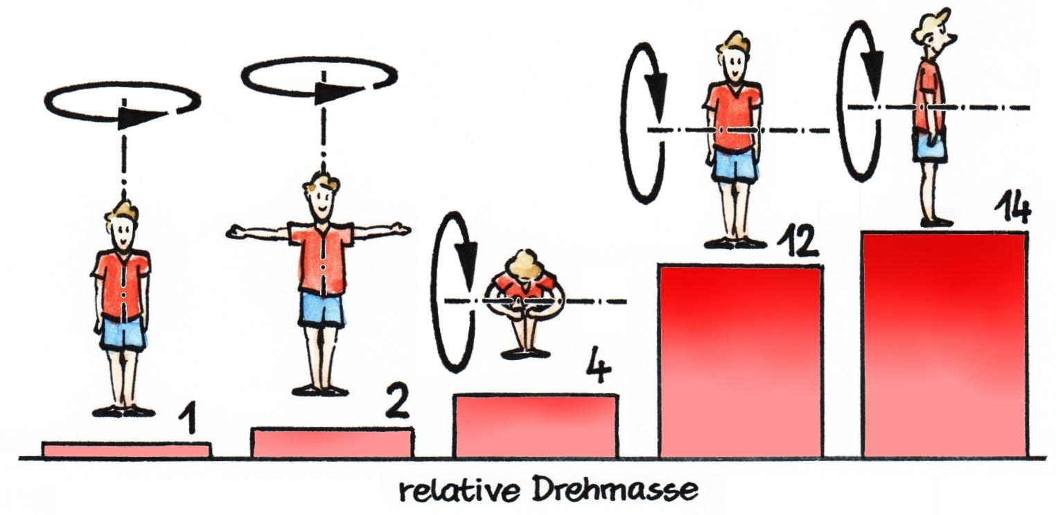 Relative Drehmassen bei verschiedenen Rotationen des menschlichen Körpers