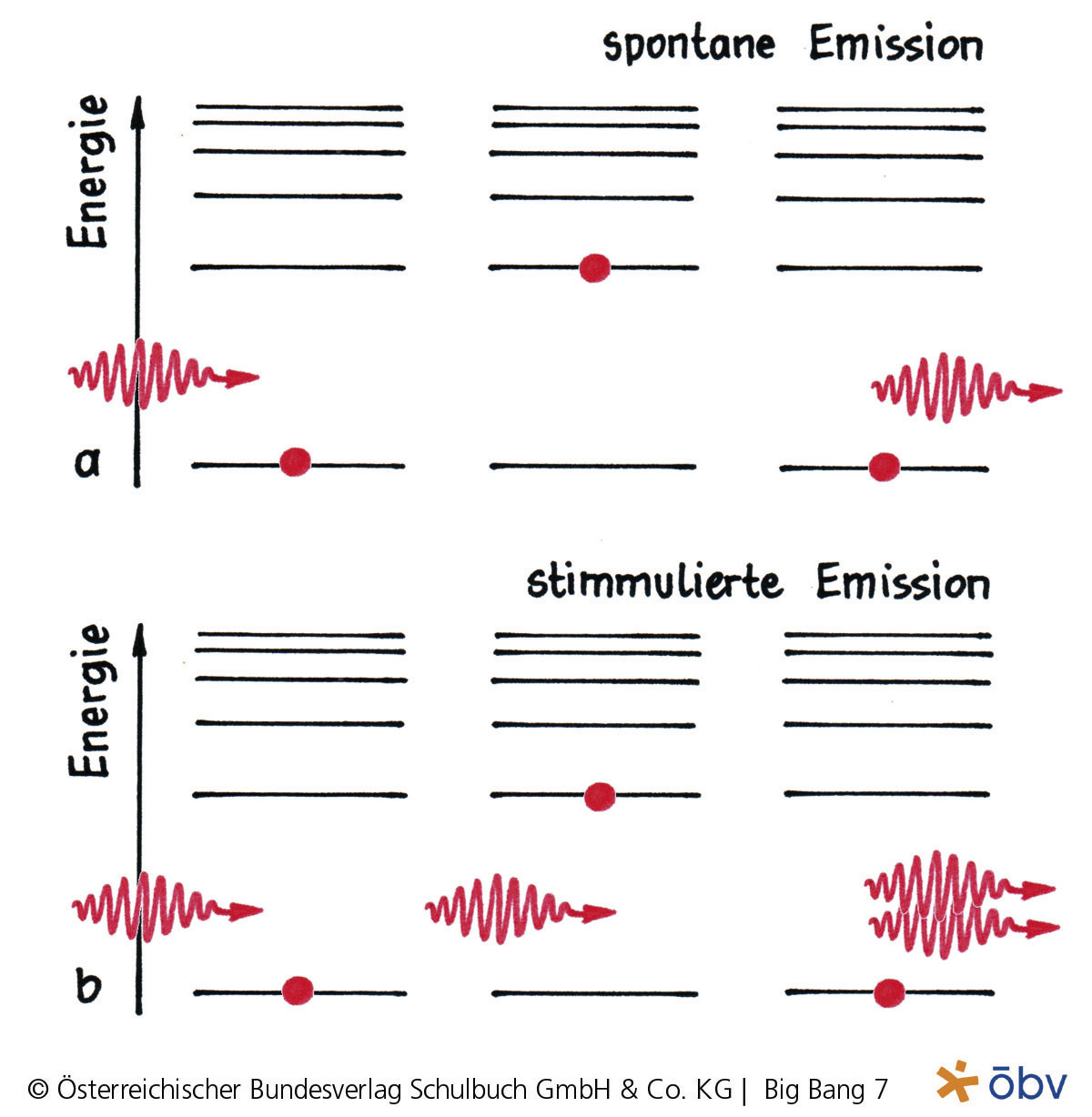 Die zwei Möglichkeiten der Aussendung (Emission) eines Photons