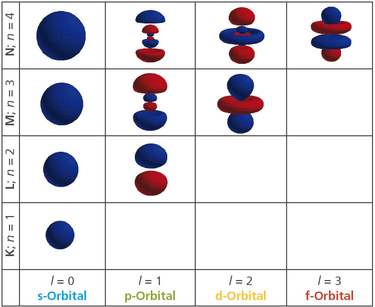 Orbitalformen der ersten 4 Schalen bei Wasserstoff