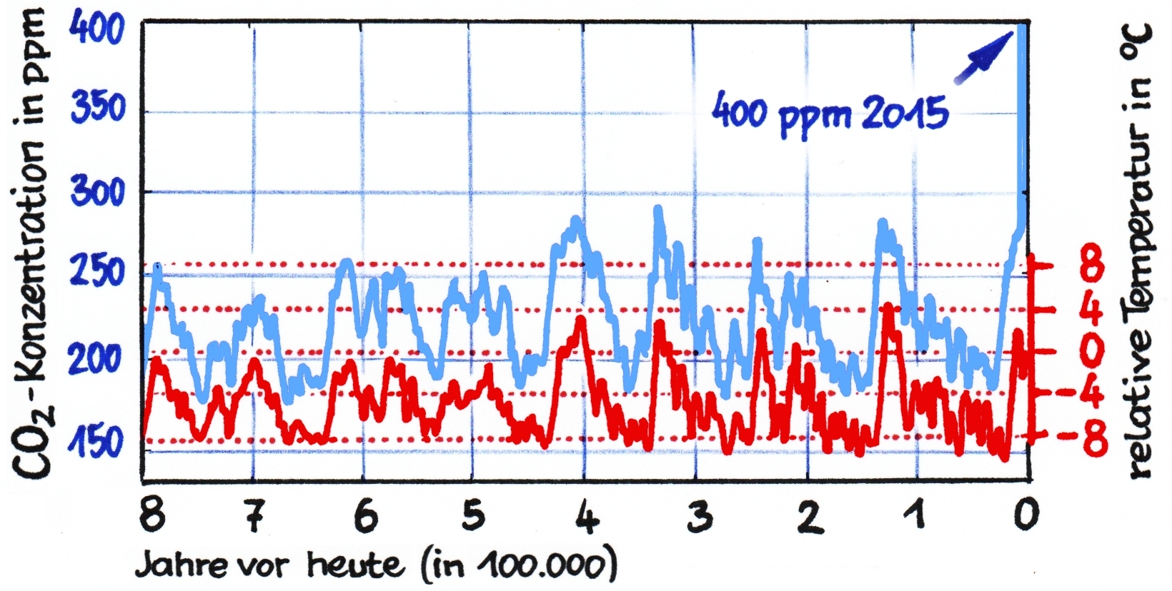Temperatur und CO2 in den letzten 800.000 Jahren