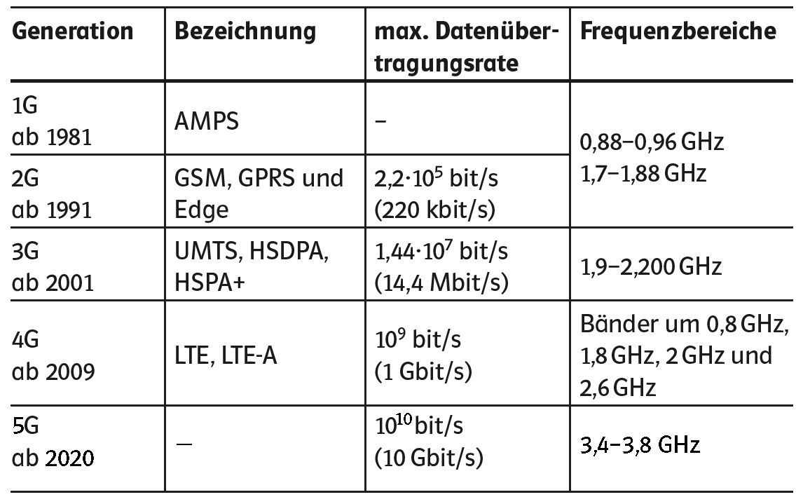 Vergleichsdaten: GSM und UMTS