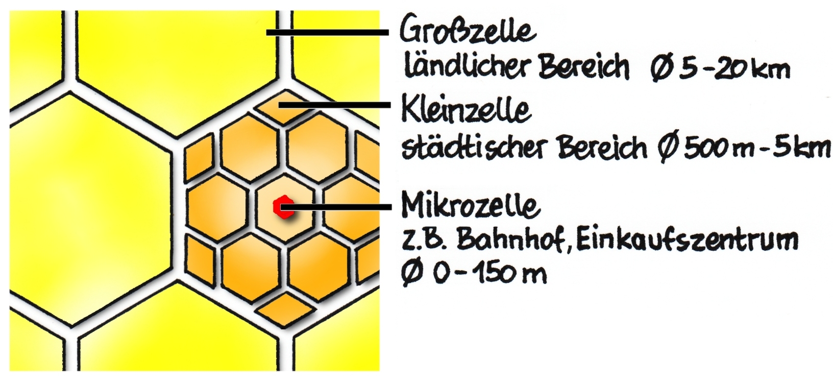 Versorgung eines Landes mit großräumigen Sendezellen