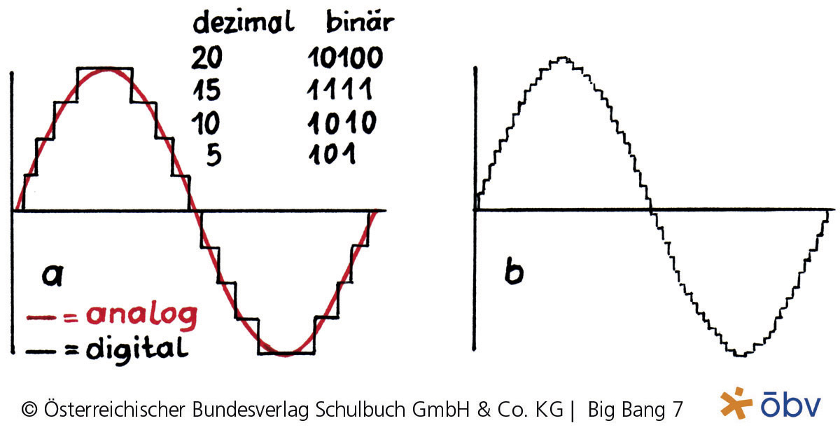 Analoge Sinuskurve mit geringer bzw. hoher Abtastungsrate