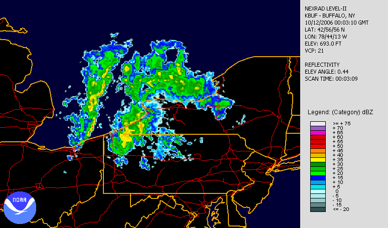 Eine Sturmfront im Doppler-Radar