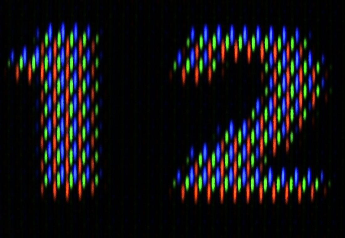 Darstellung der Zahl 12 auf schwarzem Hindergrund auf einem Fernseher