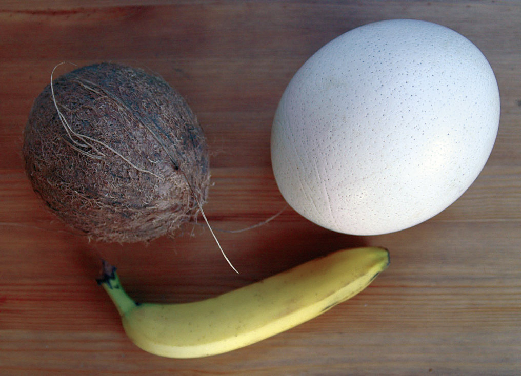 Kokosnuss, Banane und Straußenei