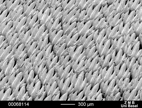 Die Haut eines Hammerhais in noch stärkerer Vergrößerung