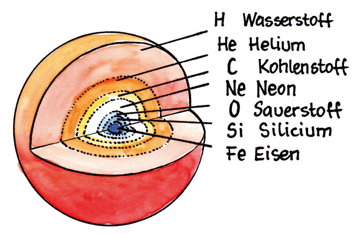 Typische Schalenstruktur eines alten Sterns