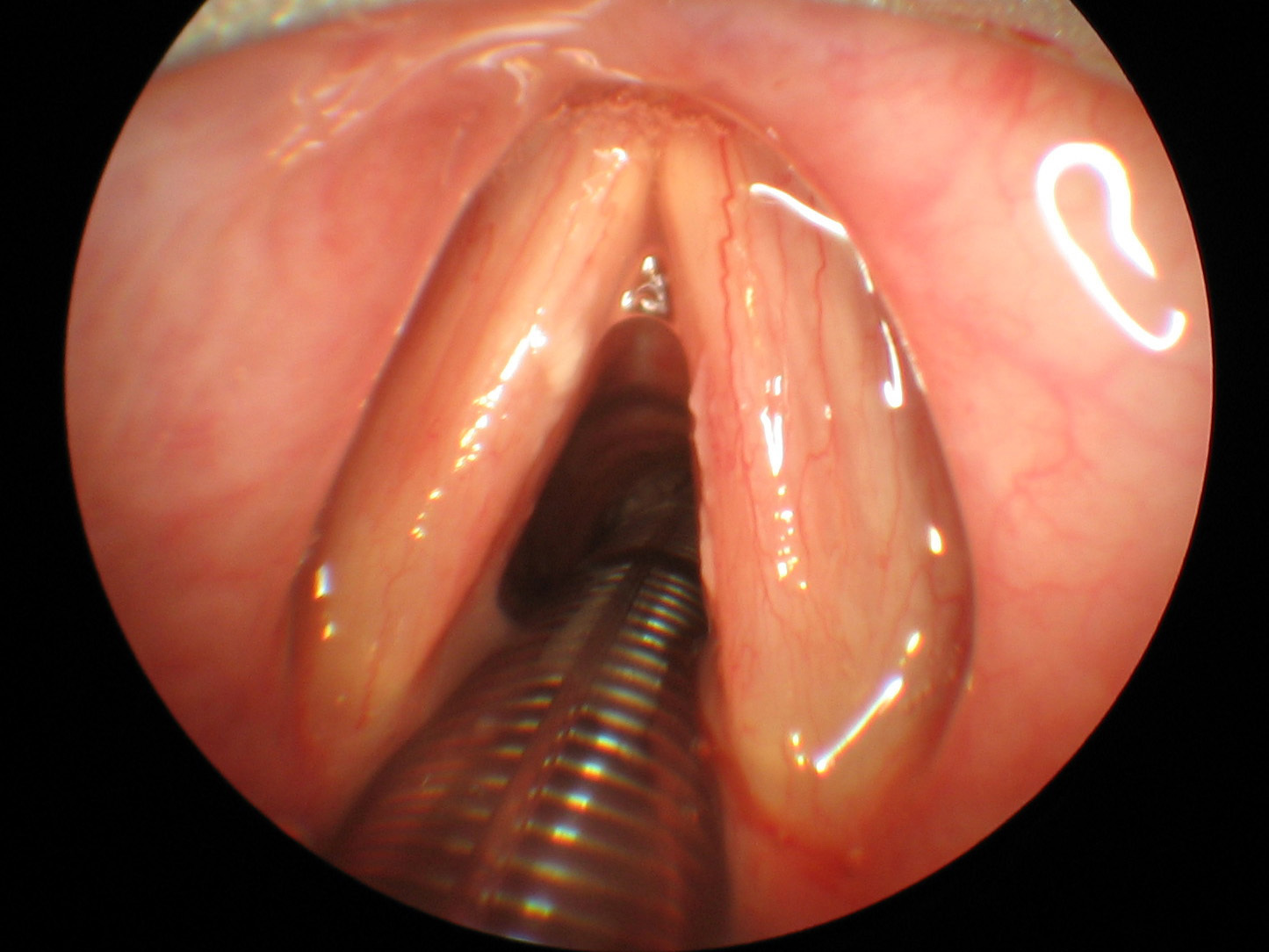 Stimmbänder eines intubierten Patienten