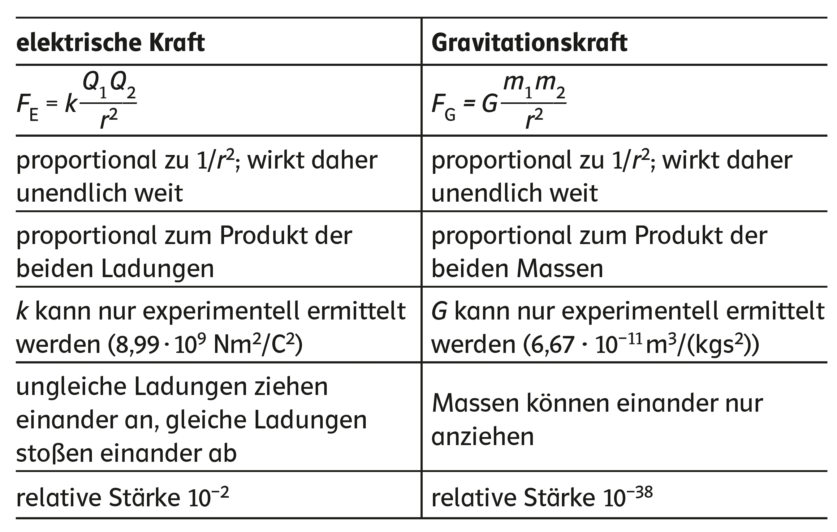 Gravitationskraft und elektrische Kraft