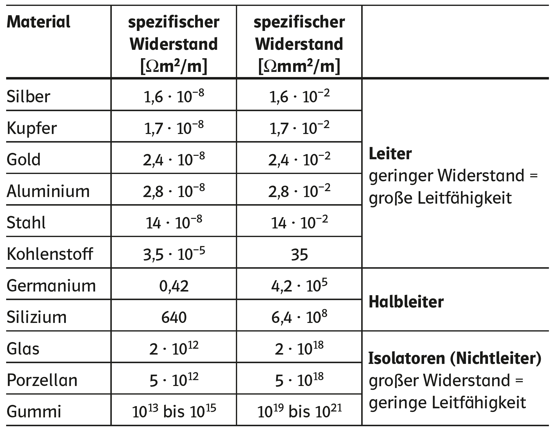 Spezifischer Widerstand bei 20 °C