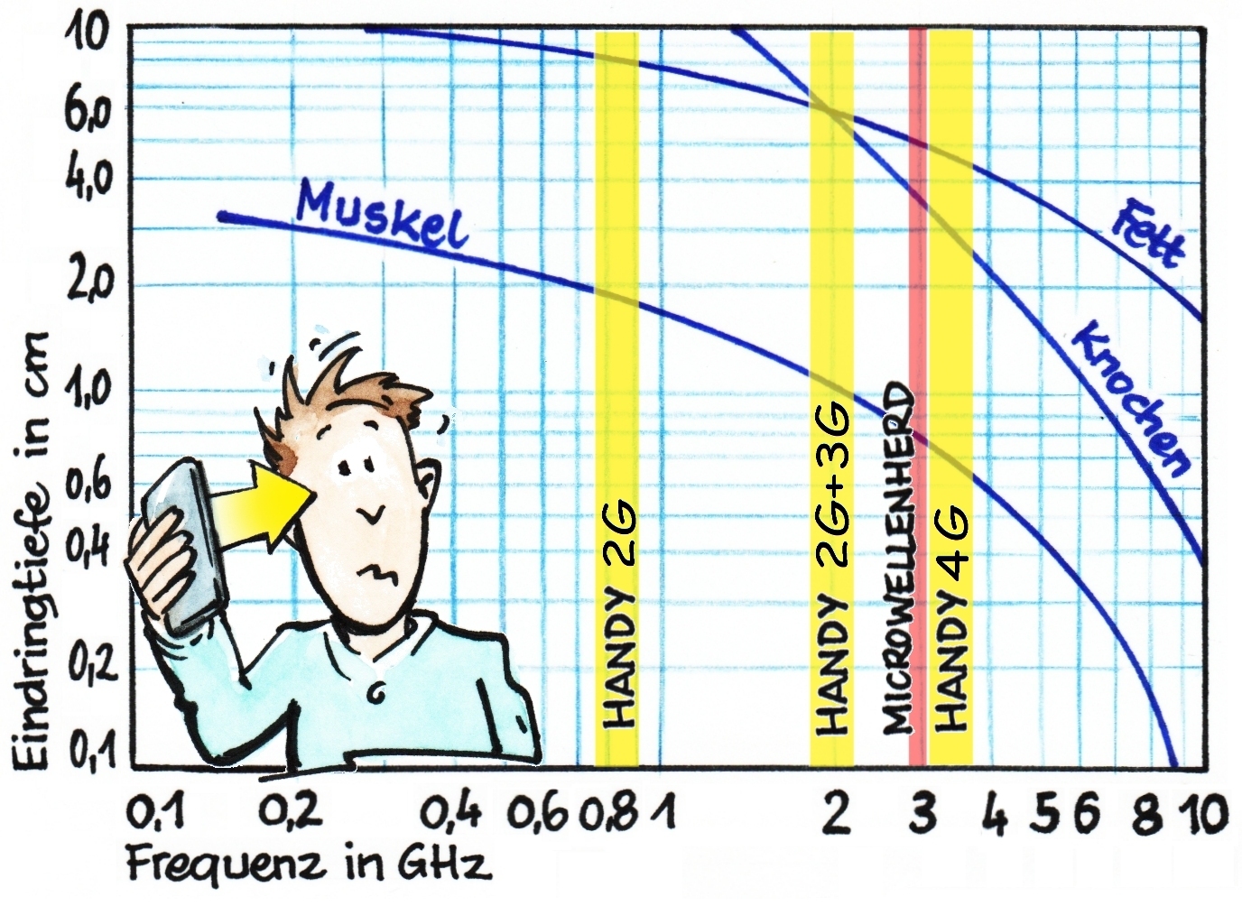 Eindringtiefen von Handywellen und Mikrowellenherd